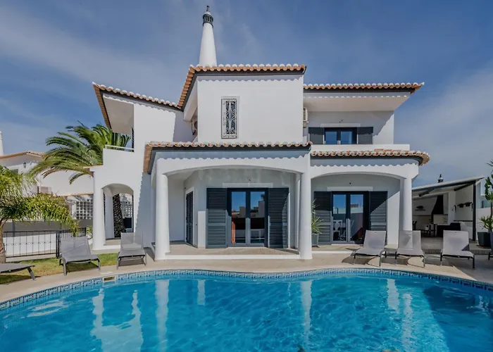 När du bor i denna strandnära villa befinner du dig 6 km från Internationella sandskulpturfestivalen och 7 km från Centro Histórico de Albufeira. Villan med 4 badrum ligger cirka 10 minuter med bil från Albufeira småbåtshamn.
